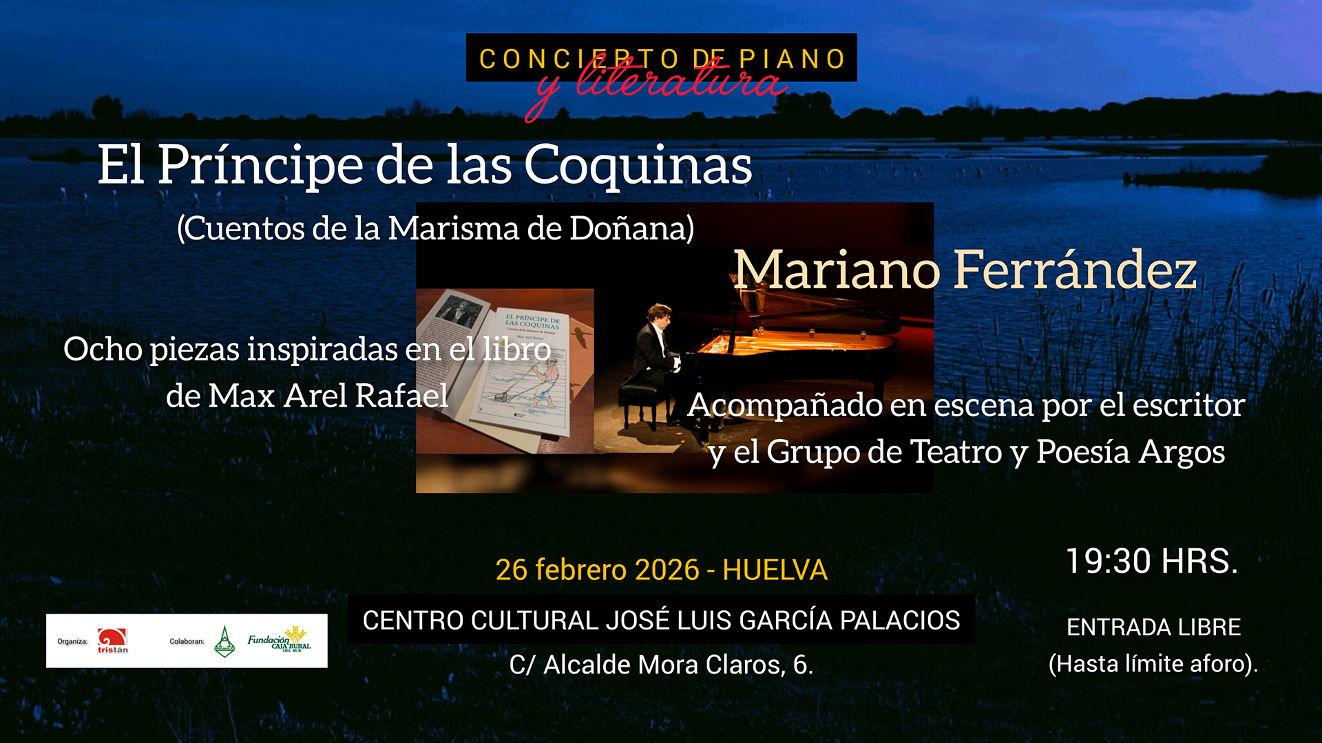 Concierto de piano y literatura: “El Príncipe de las Coquinas – Cuentos de la Marisma de Doñana”