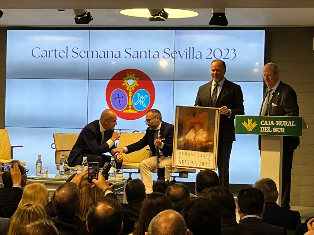 Presentación en Caja Rural del Sur del cartel de la Semana Santa de Sevilla 2023, obra del pintor sevillano Daniel Franca